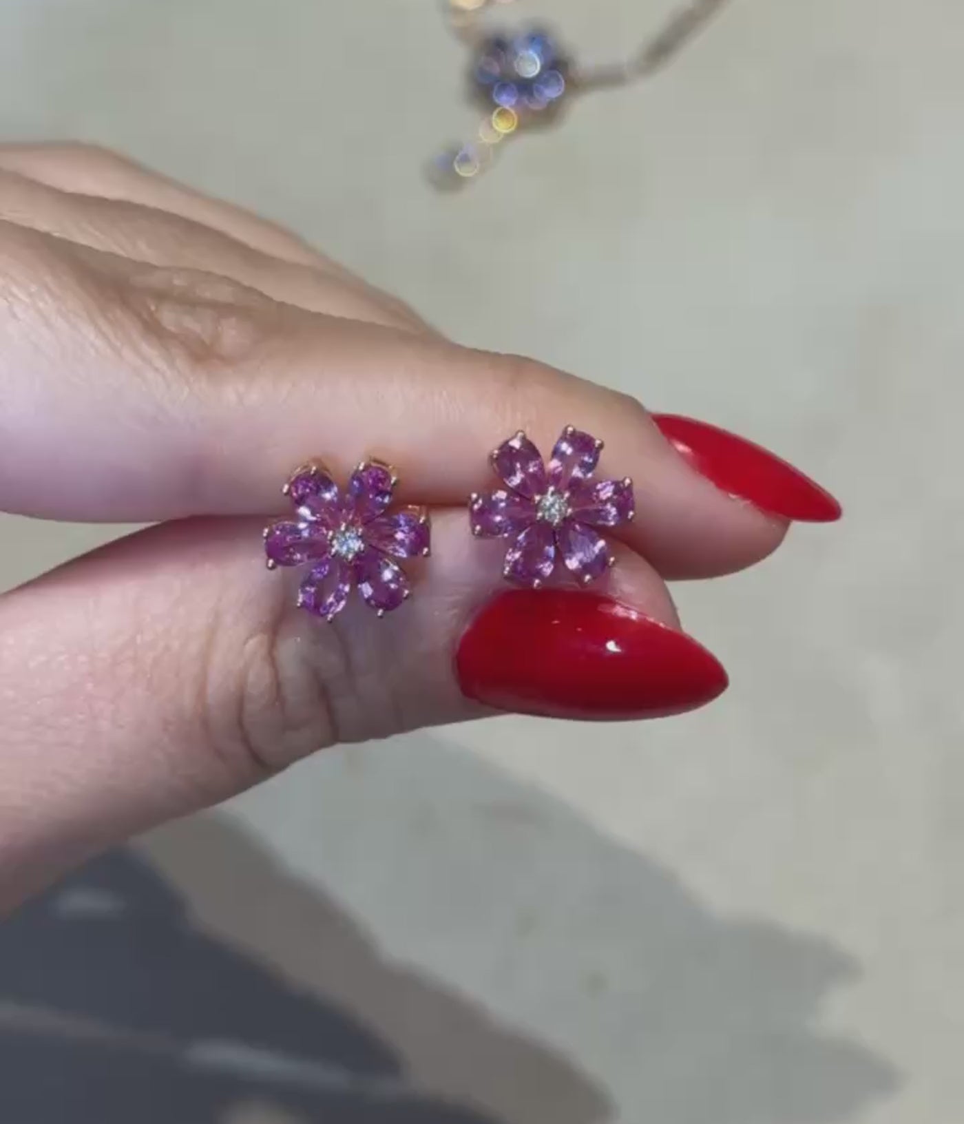 Pink Sapphire Flower Studs