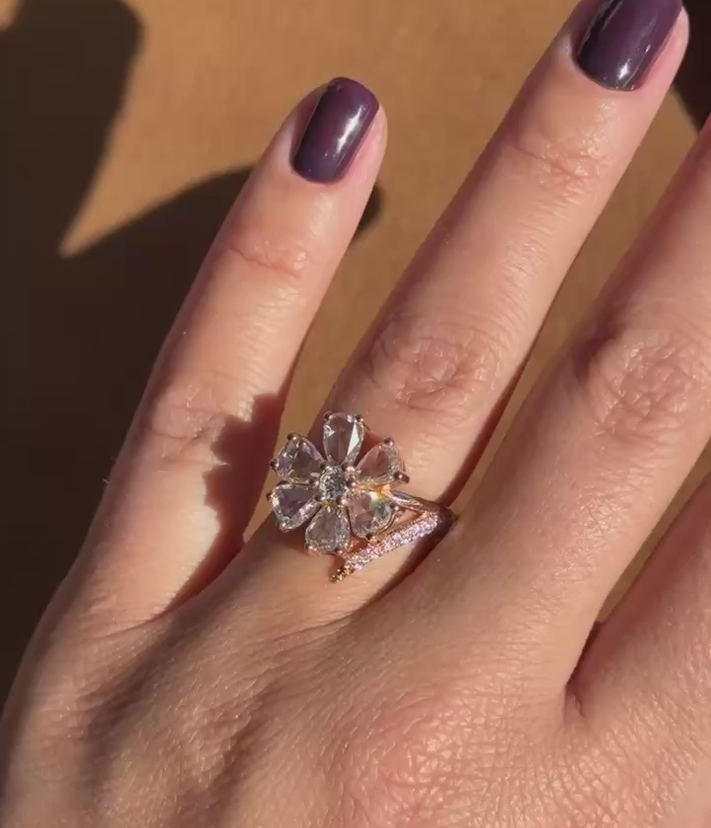 Rose Cut Diamonds Flower Ring