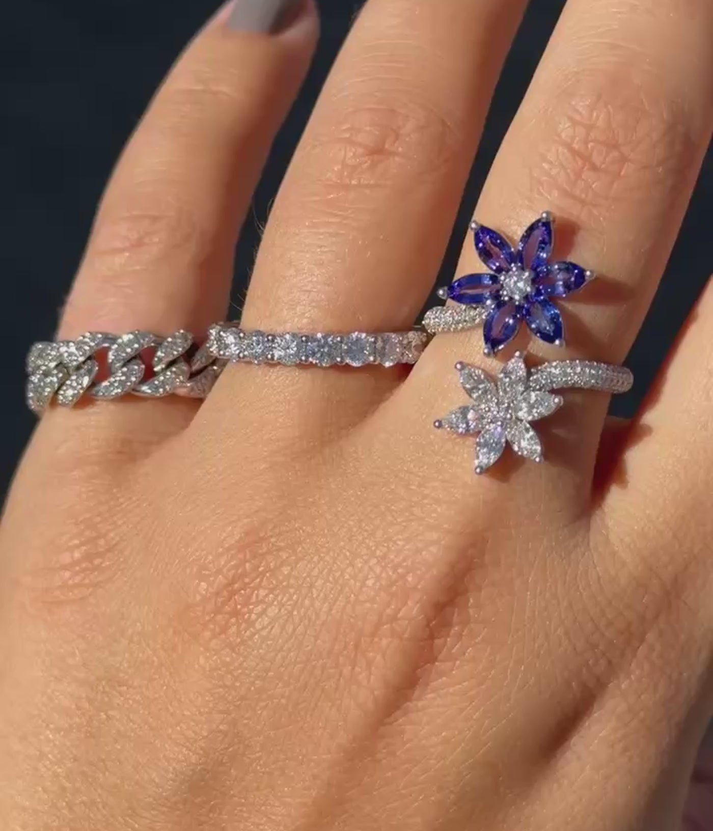 Marquise Tanzanite And Diamond Open Flower Ring